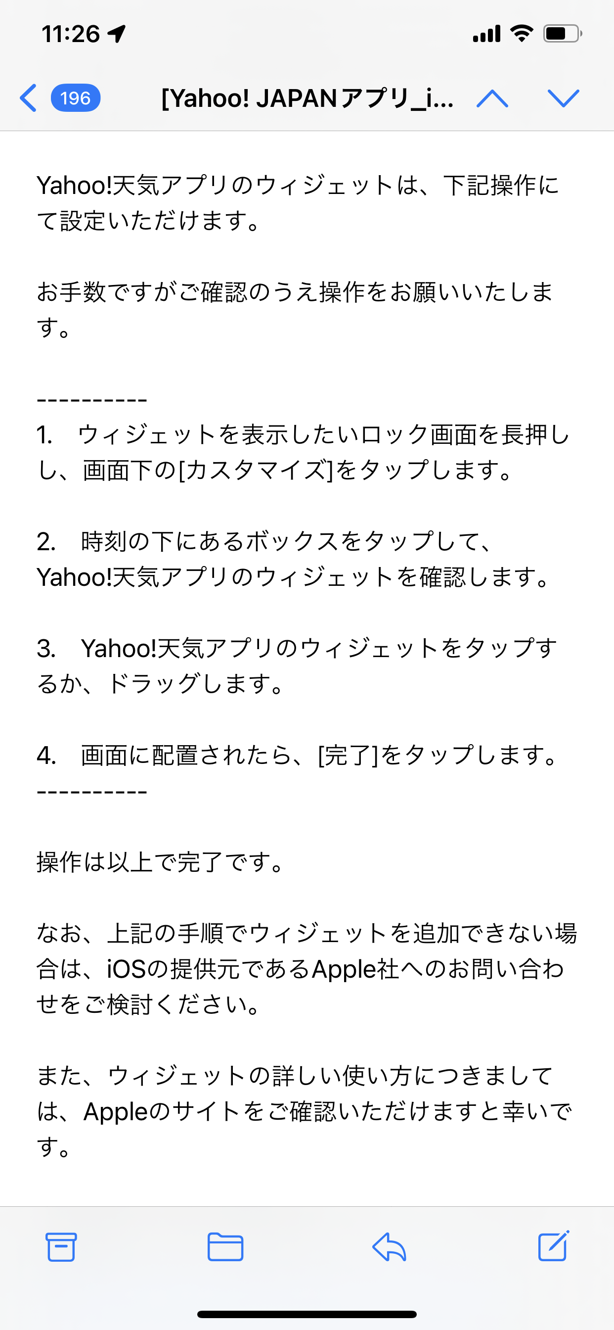 「Yahoo天気」最新バージョンをインストール後、再起動して試しましたがロック画面のウィジェットは表示されませんでした。