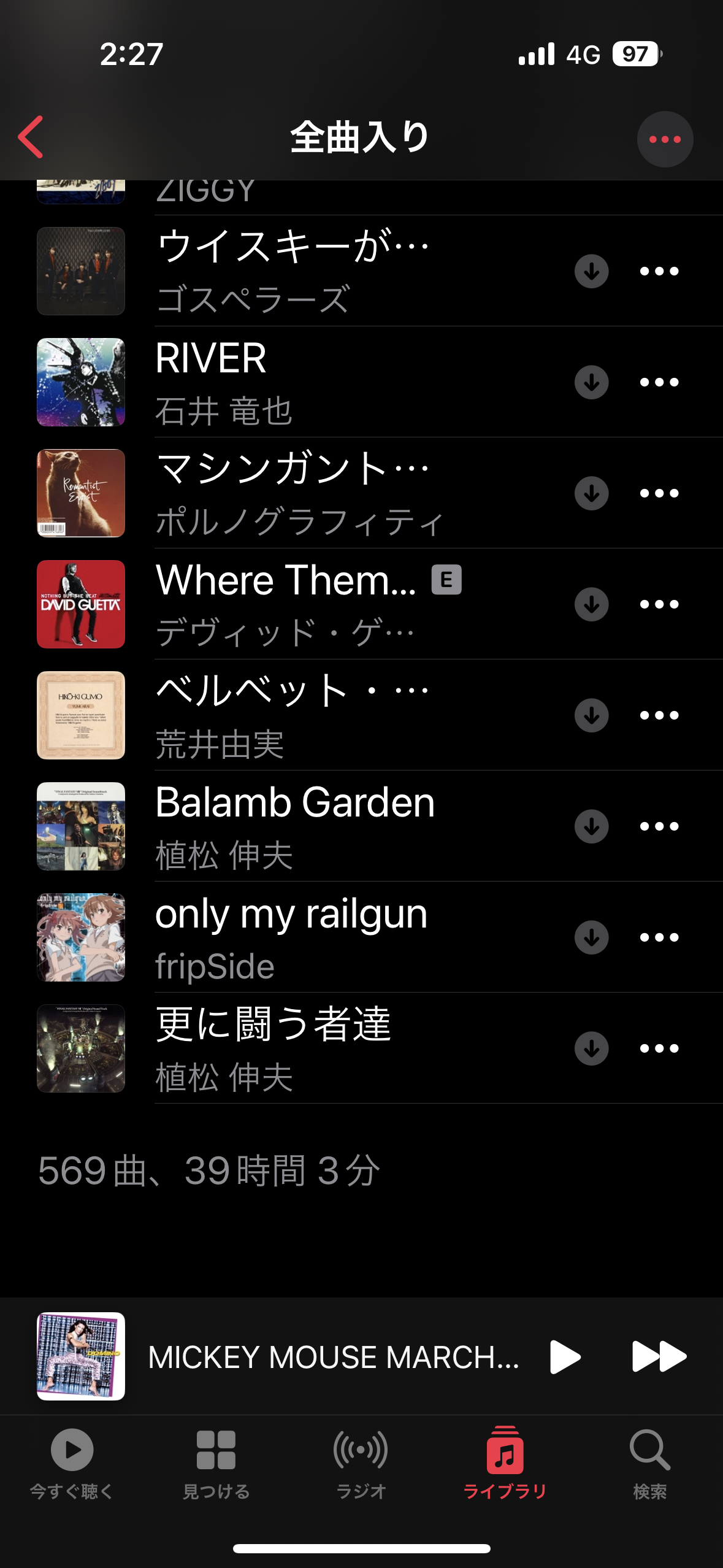現在はダウンロード済のプレイリストに全曲入れた物を作って使っています。