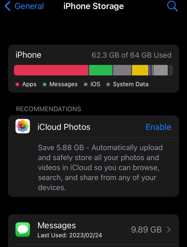 メッセージアプリ内のメッセージを全て消しても、9GB使用されているままです。