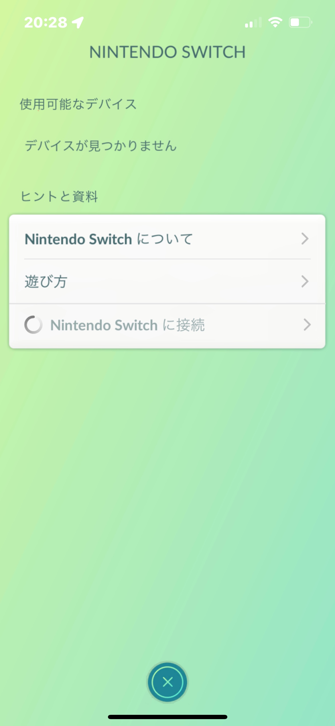「Nintendo Switchに接続」にしても、写真のようにくるくるして、そのあとから進まずデバイスが見つからないので、Bluetooth接続必要なのかと思っていました。