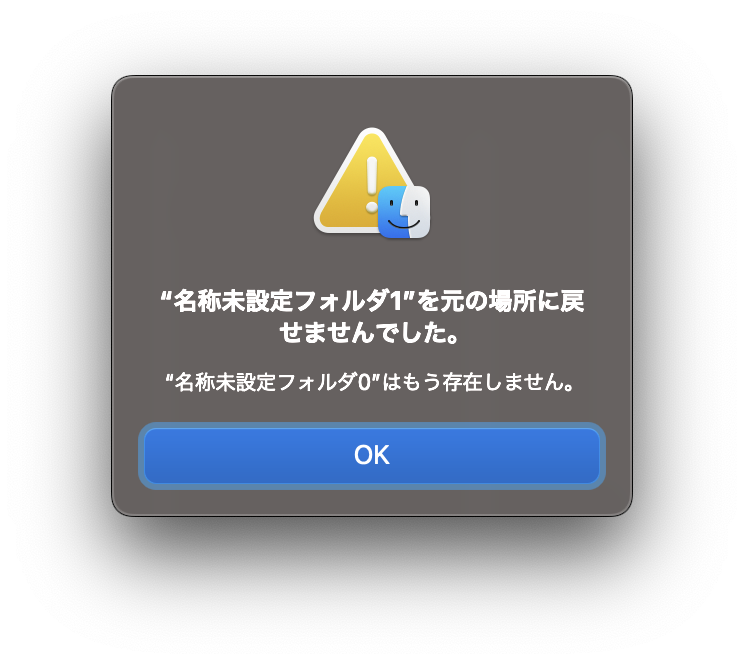 ・任意のフォルダからファイルを捨てて、すぐに"cmd"+"Z"を押すと捨てたファイルが戻ってきますが、そのフォルダから移動してしまうとアウトです。