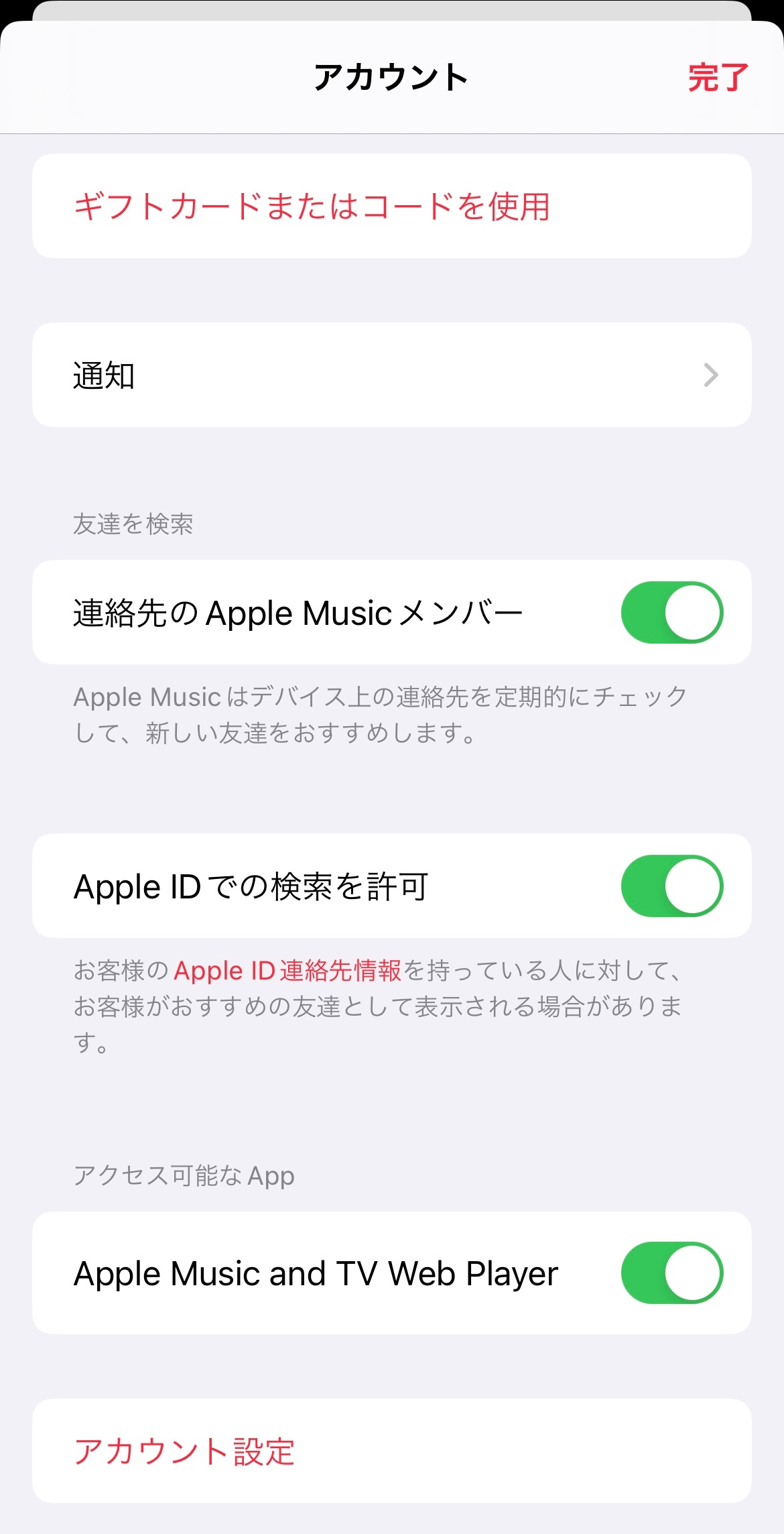 musicアプリにて、プロフィールの設定をしたいのですが設定欄が見つかりません。