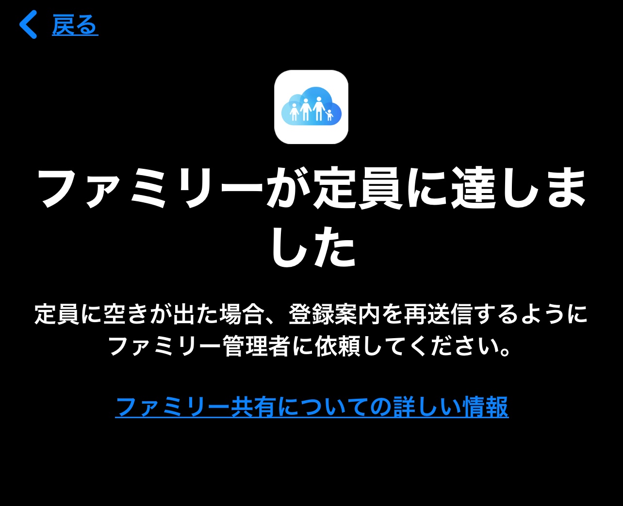 Apple musicをファミリープランで使用しており、今回1台iPhoneを追加したので、ファミリー共有をかけようとしたら、右上の追加ボタンが押せません。一度ファミリーを解散して家族一人一人再登録かけたのですが、1番最後にメールで招待をかけた所、ファミリーが定員に達しましたと案内が出ております。何か考えられますか?