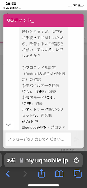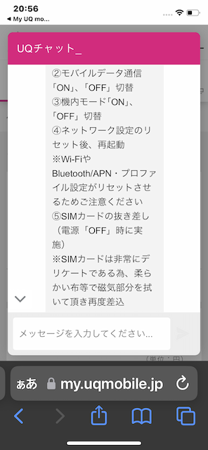 UQモバイルの圏外症状について確認しました。