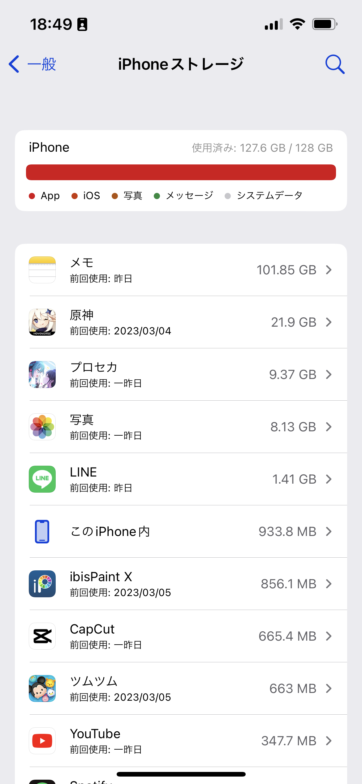 メモが一つもないのに容量が増えません。起こってから2ヶ月ほどは立ち、再起動は何回もしています。ソフトウェアアップデートすらできずに困っています。親の制限などの問題で簡単にリセットやiTunesを使うことはできません…