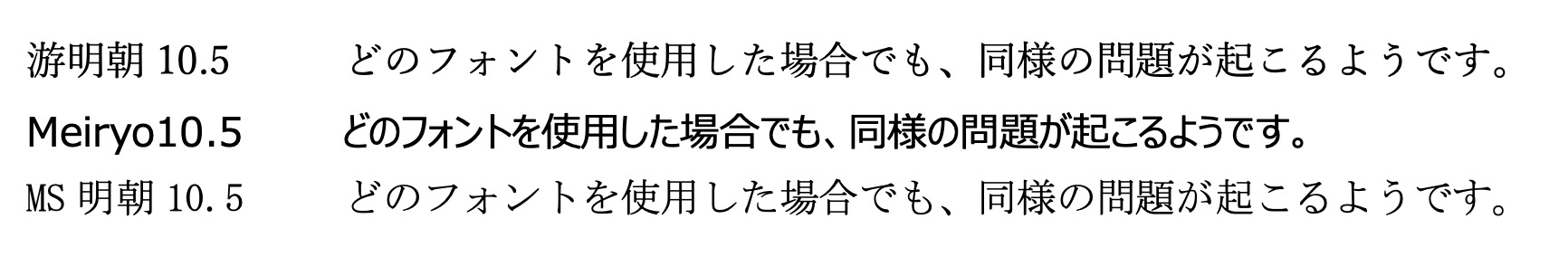 どのフォントを使用した場合でも、同様の問題が起こるようです。