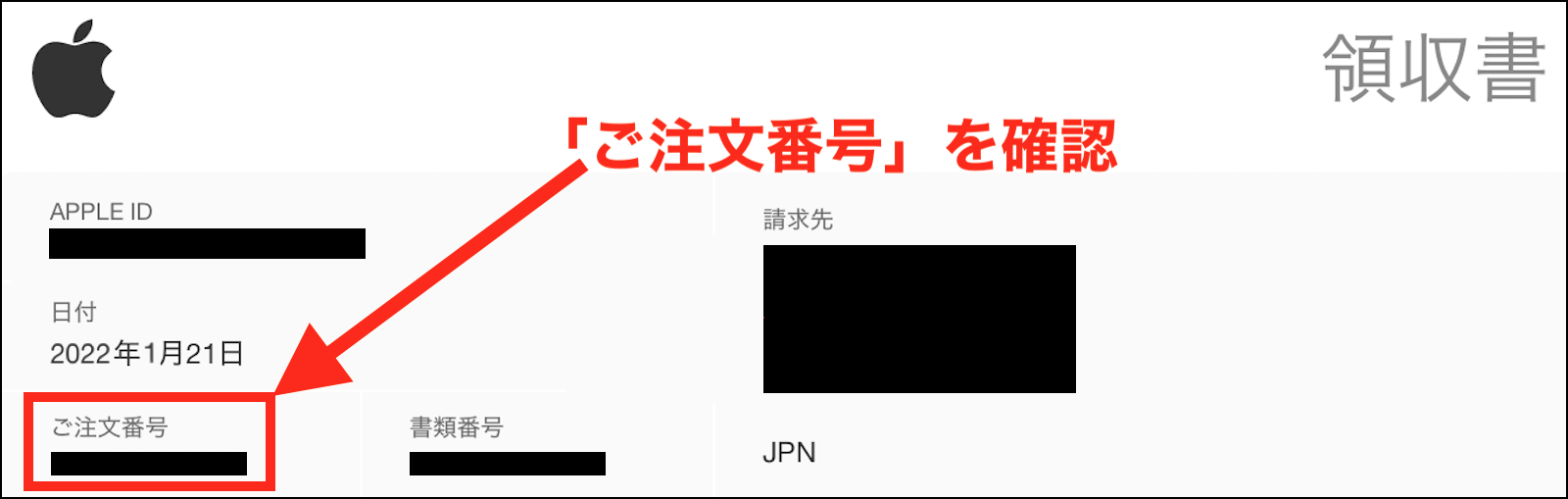 私の場合、無料トライアル期間中に解約したので、解約せずに無料トライアル期間が終了した場合、どの様な請求になるのか分かりませんが、既に支払いが発生している場合は、下の画像の様に Apple から届く「領収書」メールや、下記リンクの手順で「購入履歴」を確認し、どちらの「ご注文番号」で(或いは両方の「ご注文番号」で)支払いが発生しているのかを確認 して下さい。