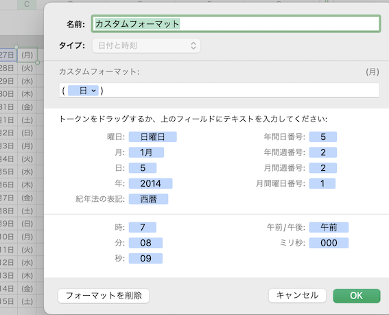 として、フォーマットを適当に指定するか、カスタムフォーマットにすれば良いです。
