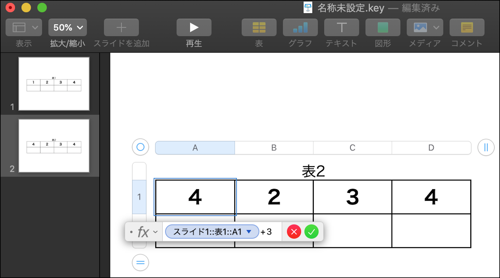 keynoteの数式>スライドを超えて数値を参照する数式は入力できませんか?