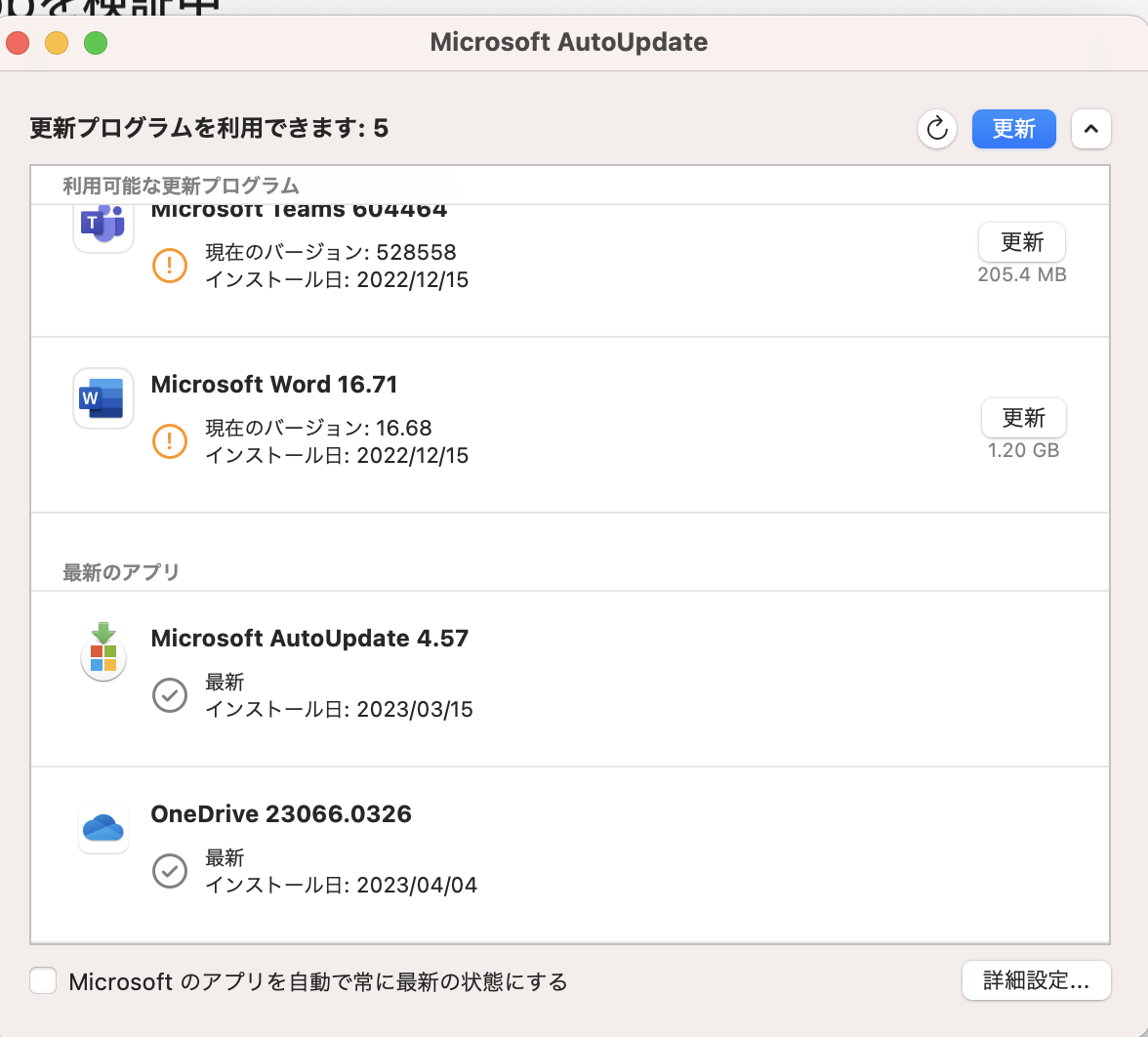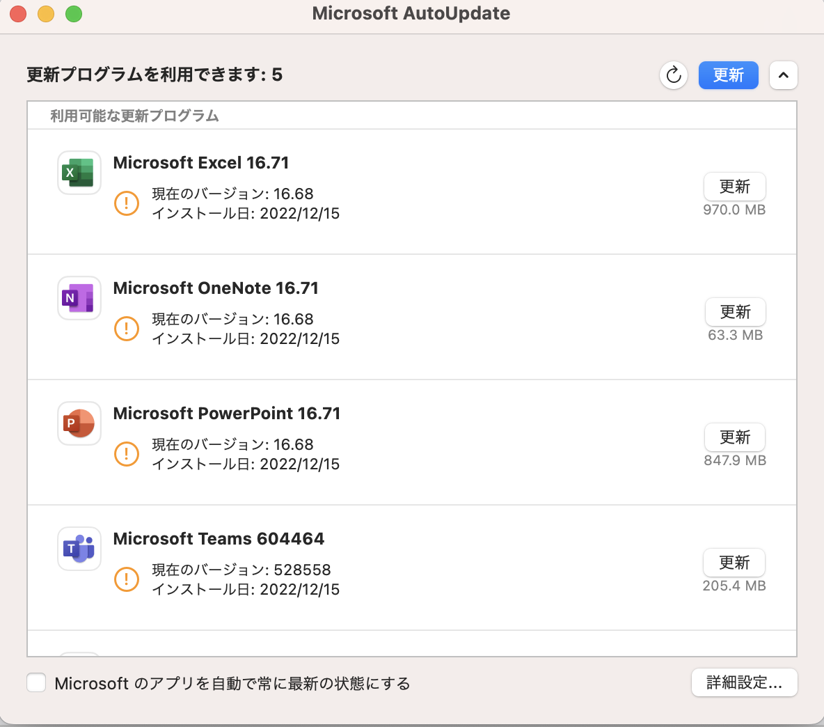前のmacでMicrosoft autoupdateの中になかった時期は2022年です