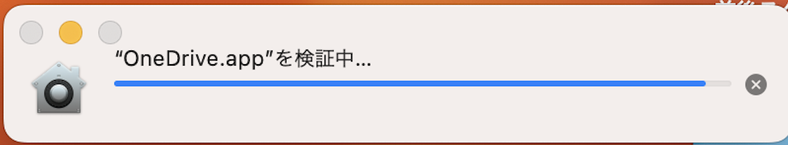 ・「"OneDrive.app"を検証中」のダイアログはアップデート後の初回起動時に必ず表示されるもので異常ではない。(他の他社製アプリでも同様)