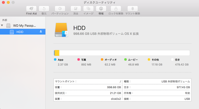 そのディスクユーティリティなら、表示はあるはずですけど。