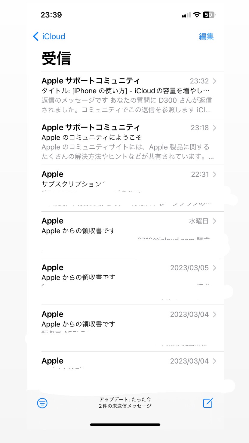 iCloudの容量を増やしたのにアップルからしかメールが届かない