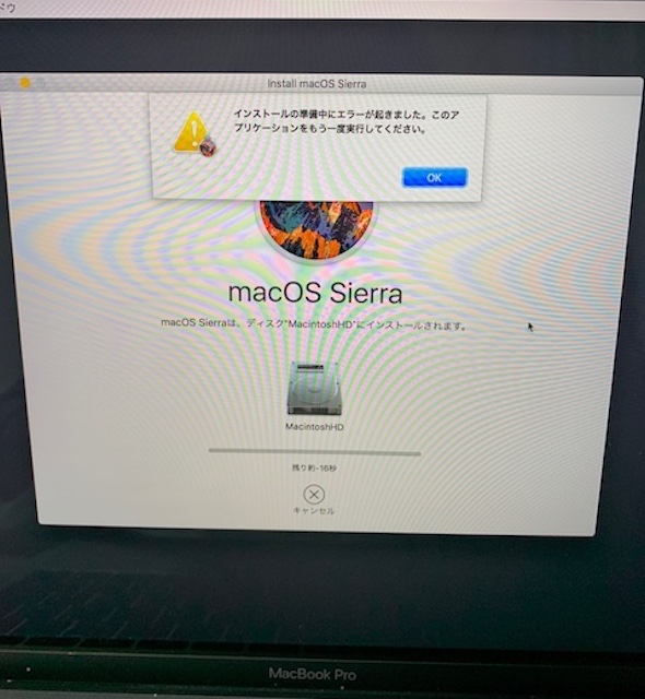 Mac OSのインストール準備中にエラー