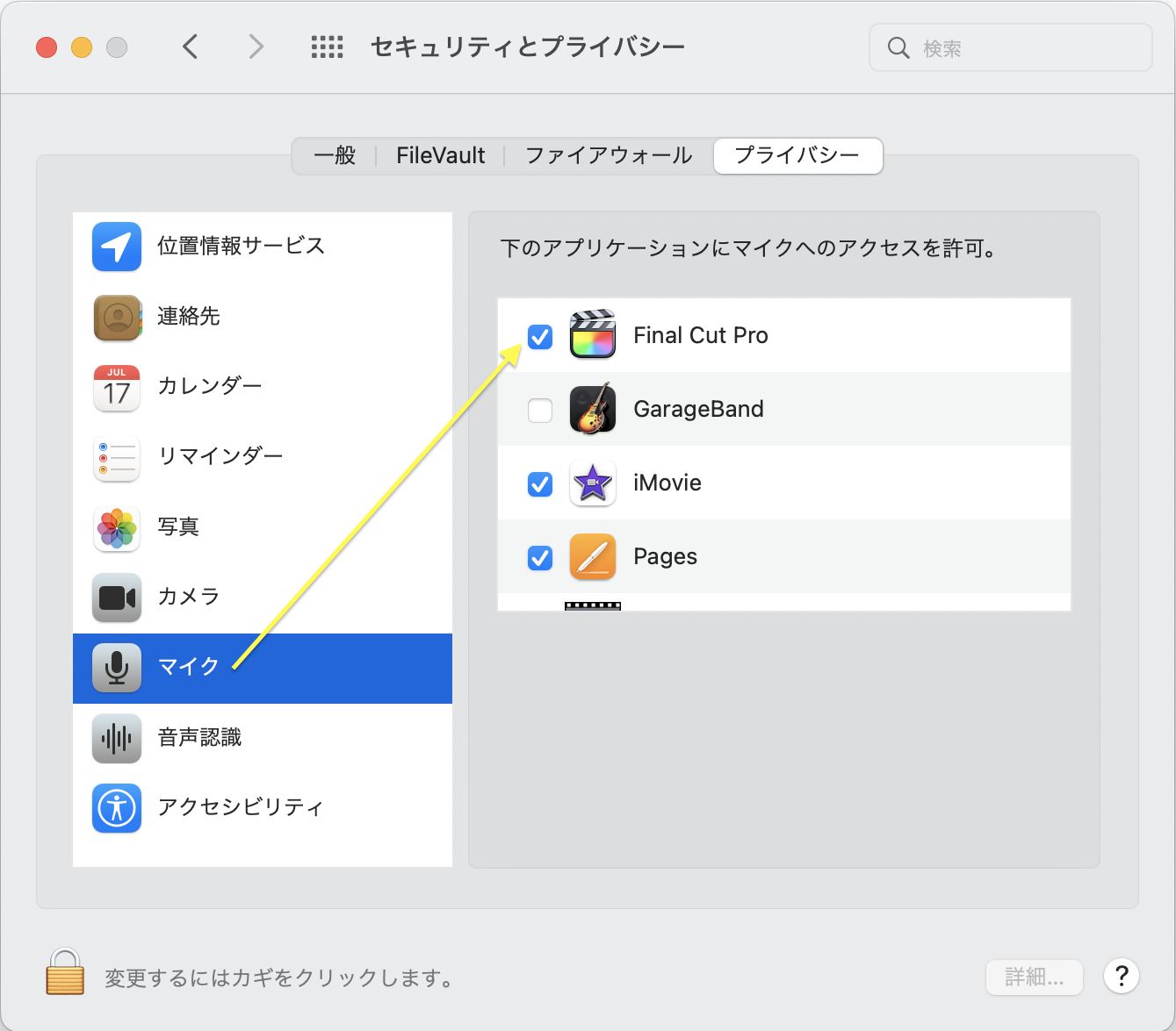 ユーザのユーザプロフィール: LocaAlicia LocaAlicia ユーザレベル: レベル 2 414 ポイント 2023/04/16 17:25 チャカポン への返信 システム設定も確認しましたマイク→FinalCutPro にチェックされてるという事ですか?そうであれば、内臓マイクで録音できるはずなんですが・・タイムラインのクリップ波形を見せて下さい 返信 リンク