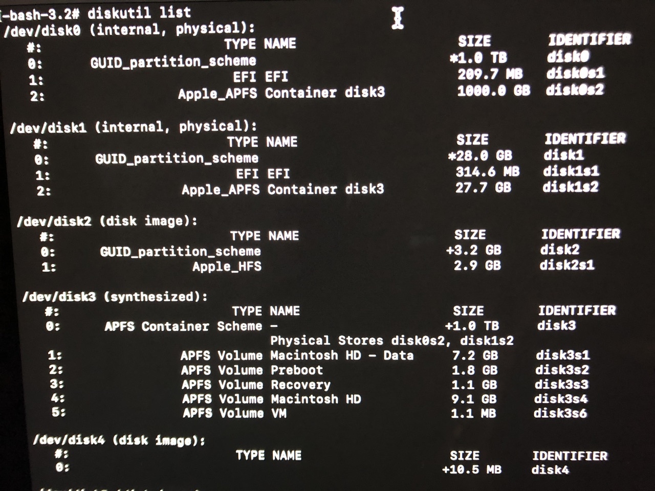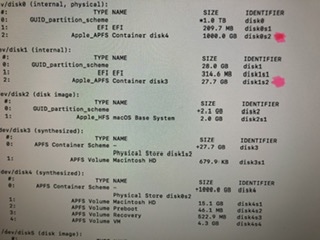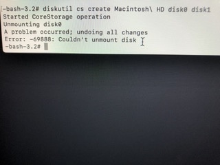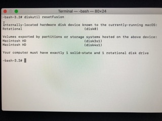 Fusion Drive が分裂してしまっております😩色々検索して、ターミナルで修復-消去、また初期化をしようとここと見ているのですが、壁にぶつかっておりアドバイスいただきたいと思います。