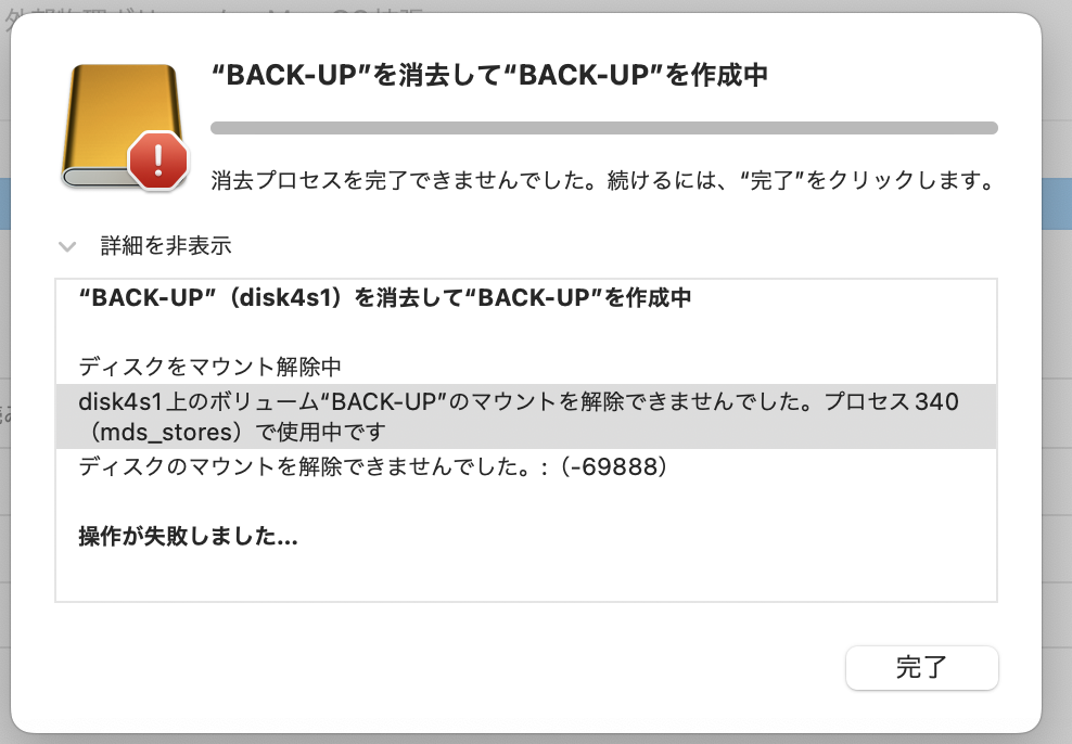 TIME MACHINEで外付けHDに自動でバックアップしてましたが、突然「ディスクが読み出しのみ可能なのでバックアップができません」