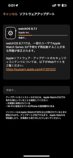 applewatch series3 ペアリングおよびアップデート8.7.1の不可
