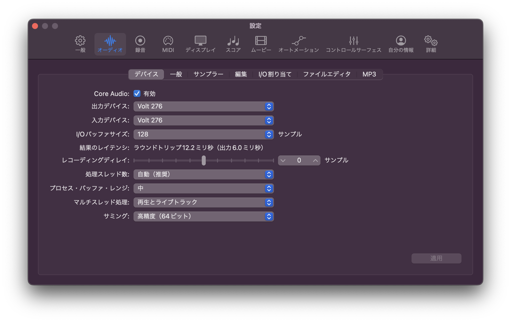 CoreAudioの有効化設定の更新や、バッファサイズの変更等を試したのですが改善しないため質問させていただきました。