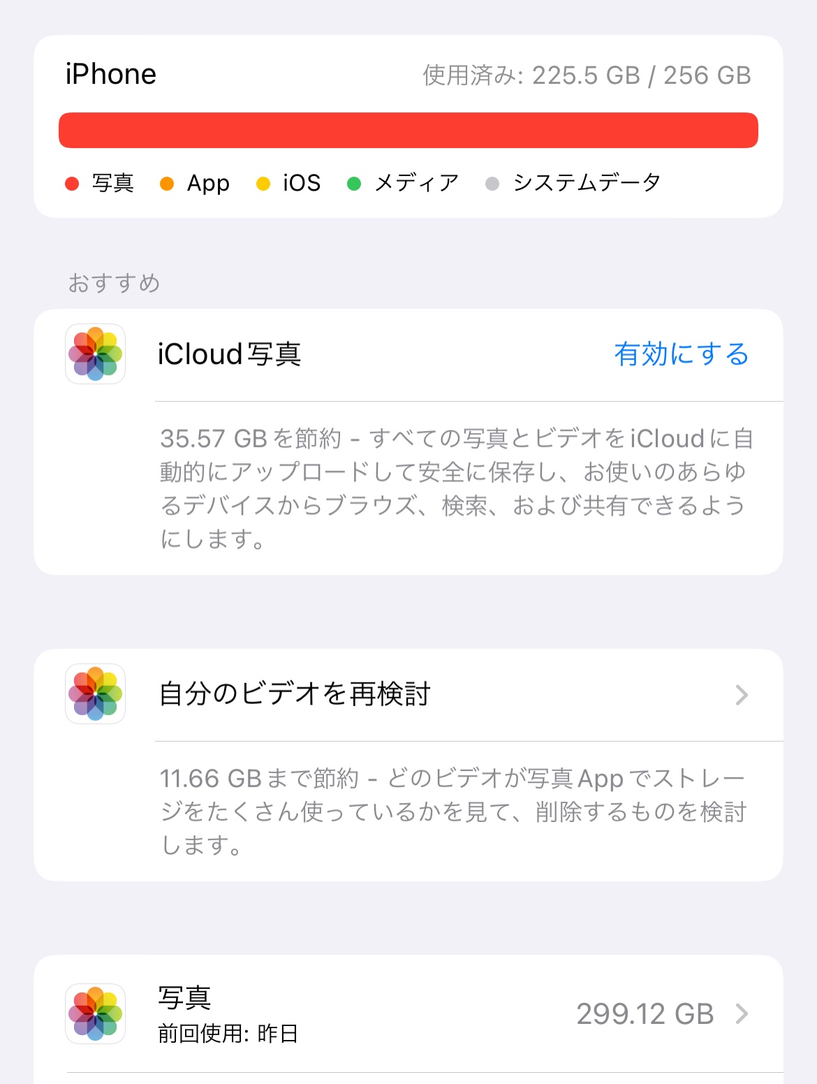 写真のストレージがなぜか300Gを超えており