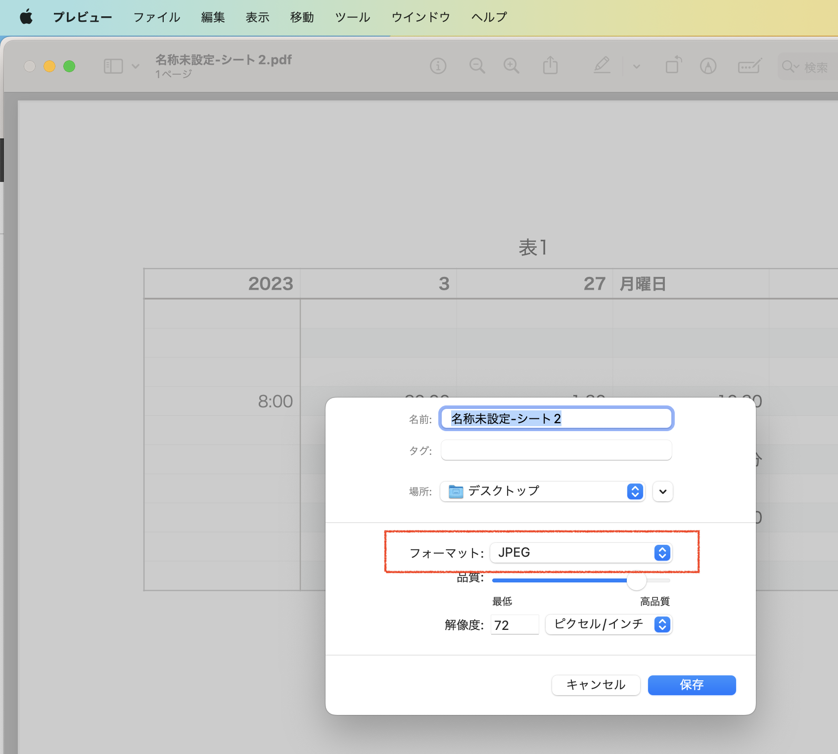 Numbers のファイルを、PDFでなくjpgに変換したい