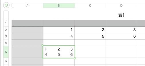 お示しの図でB2~D2を選択して ⌘C をしB5 を選択して