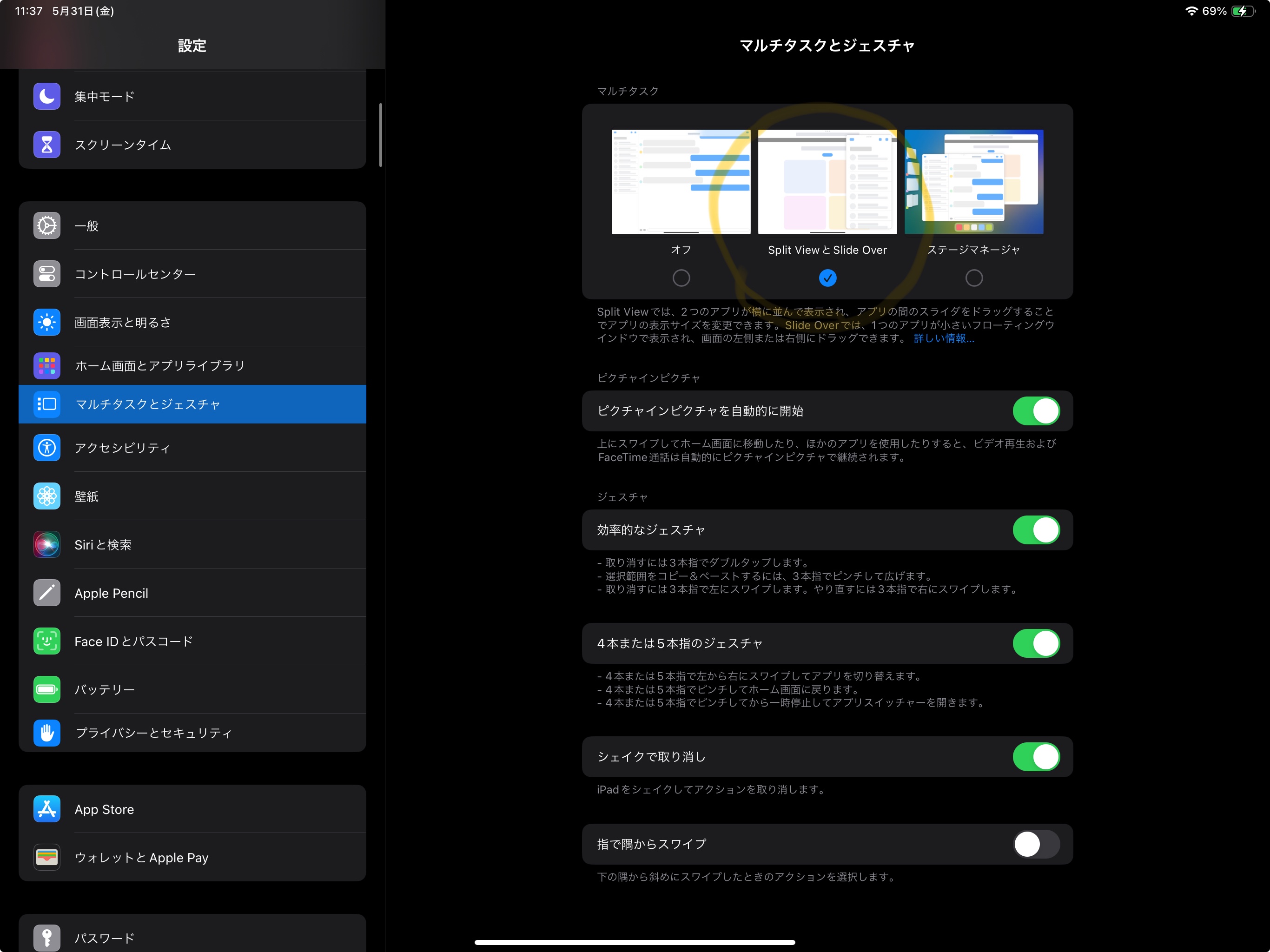 設定→マルチタスクとジェスチャのところのSplit ViewとSlide Overにチェックを入れてみてください