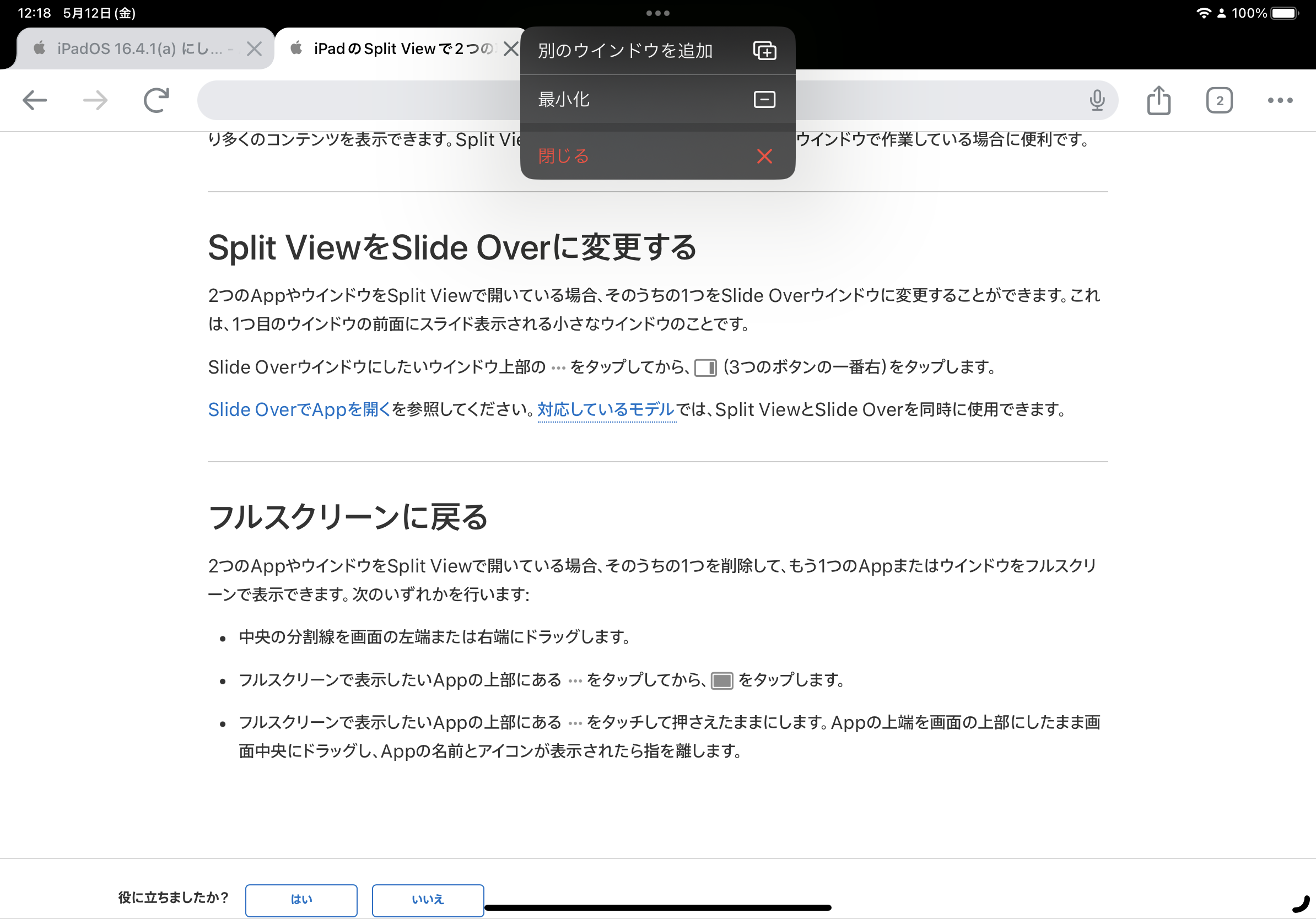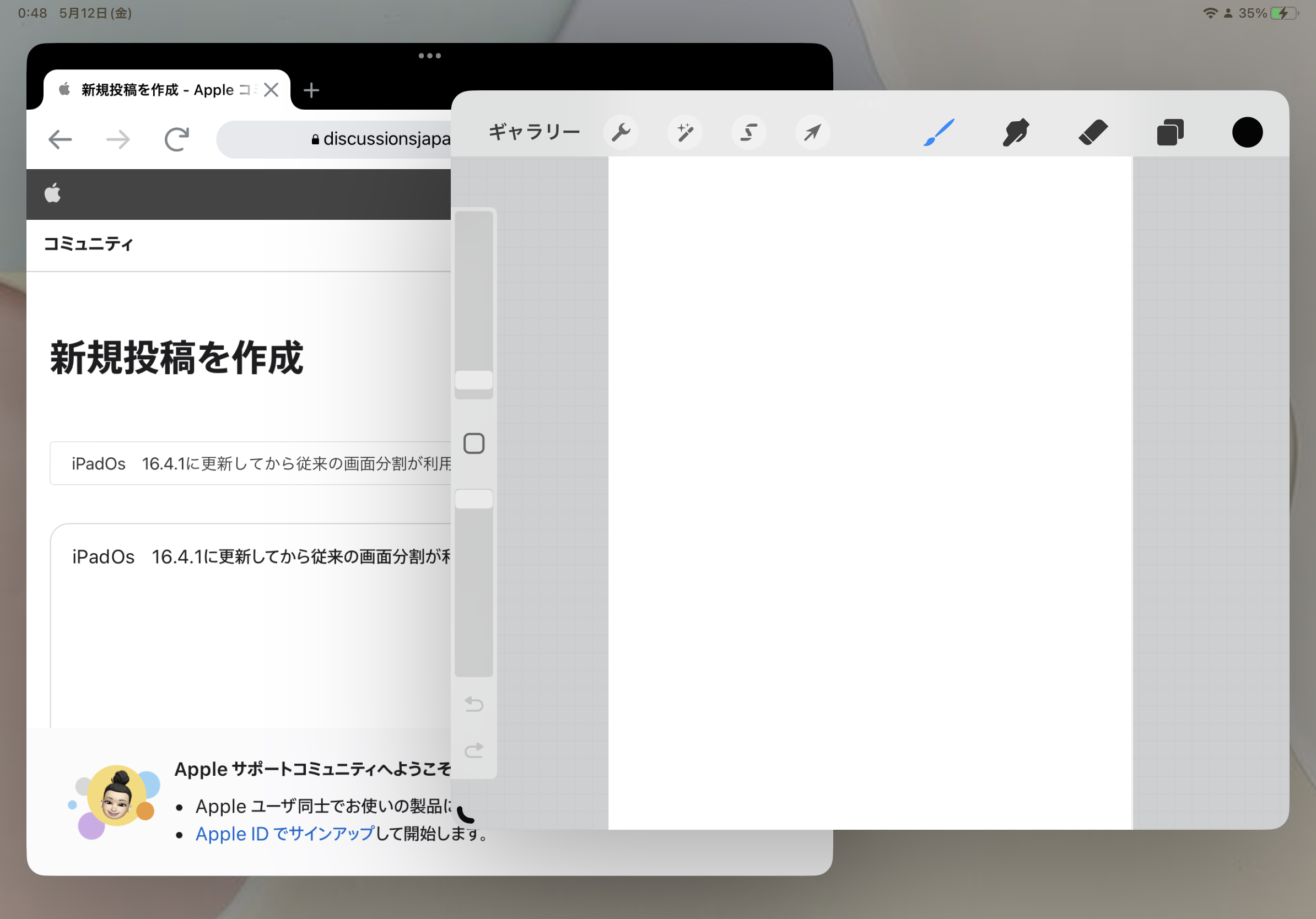 iPadOS 16.4.1(a) にしてから従来の画面分割が利用できなくなった