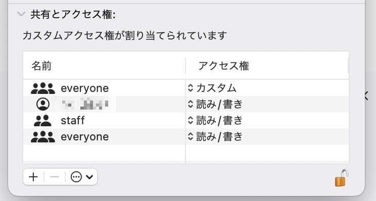 ファイルのアクセス権に項目が重複して増え「カスタム」になる (Dropbox関連)