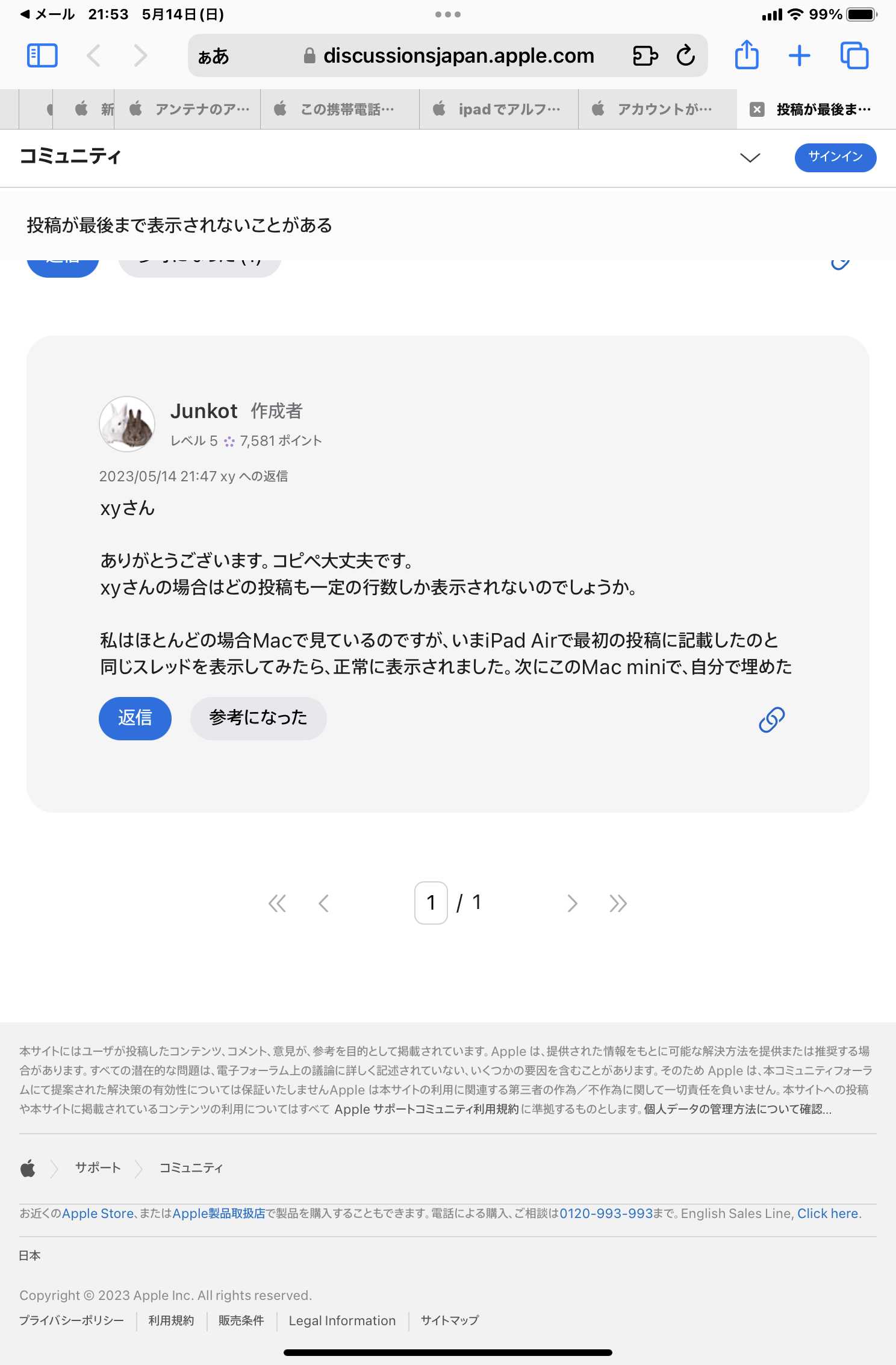 最近このコミュニティで、投稿(コメント)が最後まで表示されないことが時々あるのですが、これは私の環境だけでしょうか。