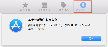 また、App Store で以下赤枠のアップデートをクリックするだけで「NSURLErrorDomain エラー -1012」が発生します。