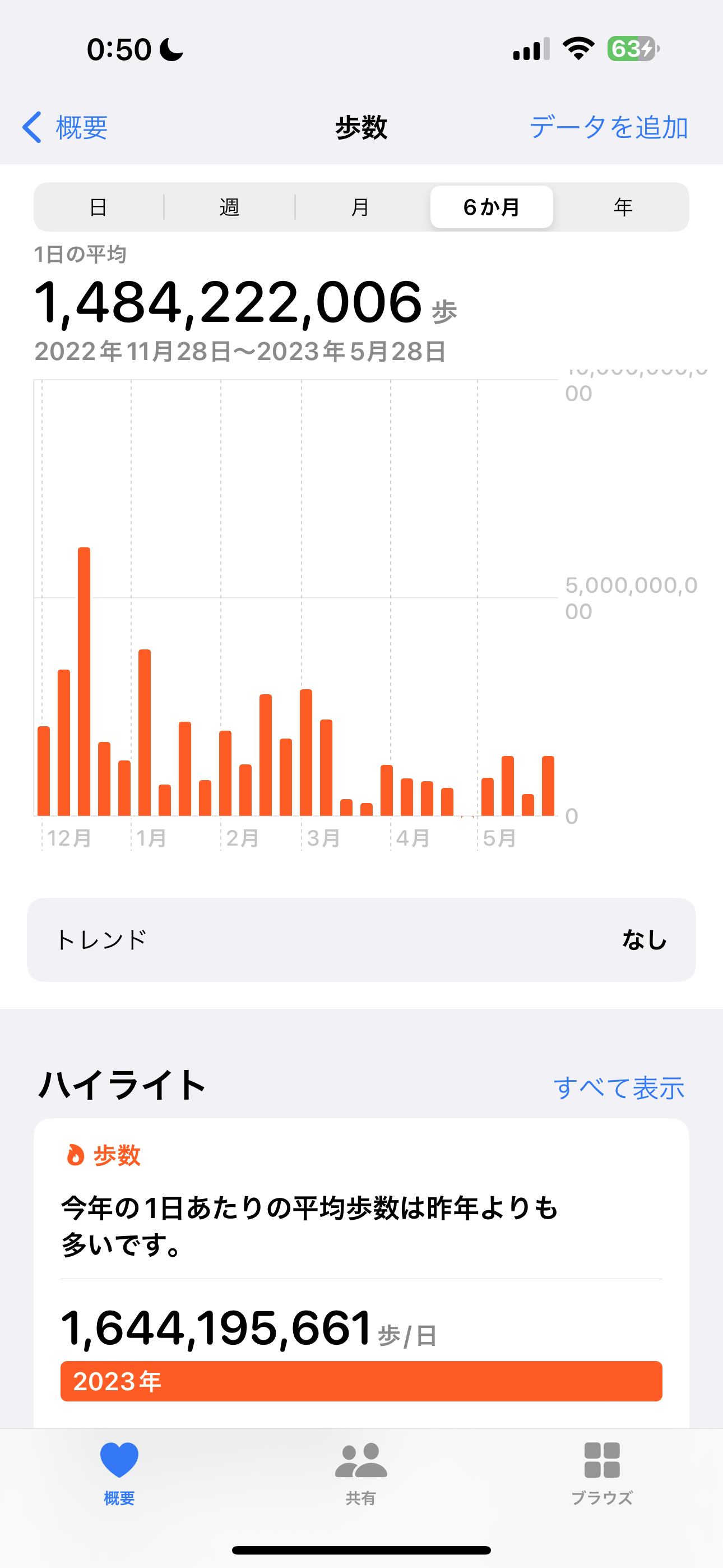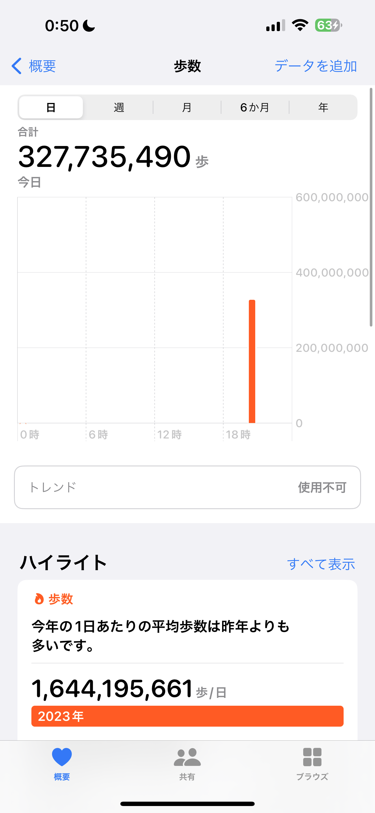 掲題の通り、1日の平均歩数が16億歩と、歩数カウントが多すぎて困っております。iOSは最新版をインストールし続けているのですが、改善の傾向が見られません。