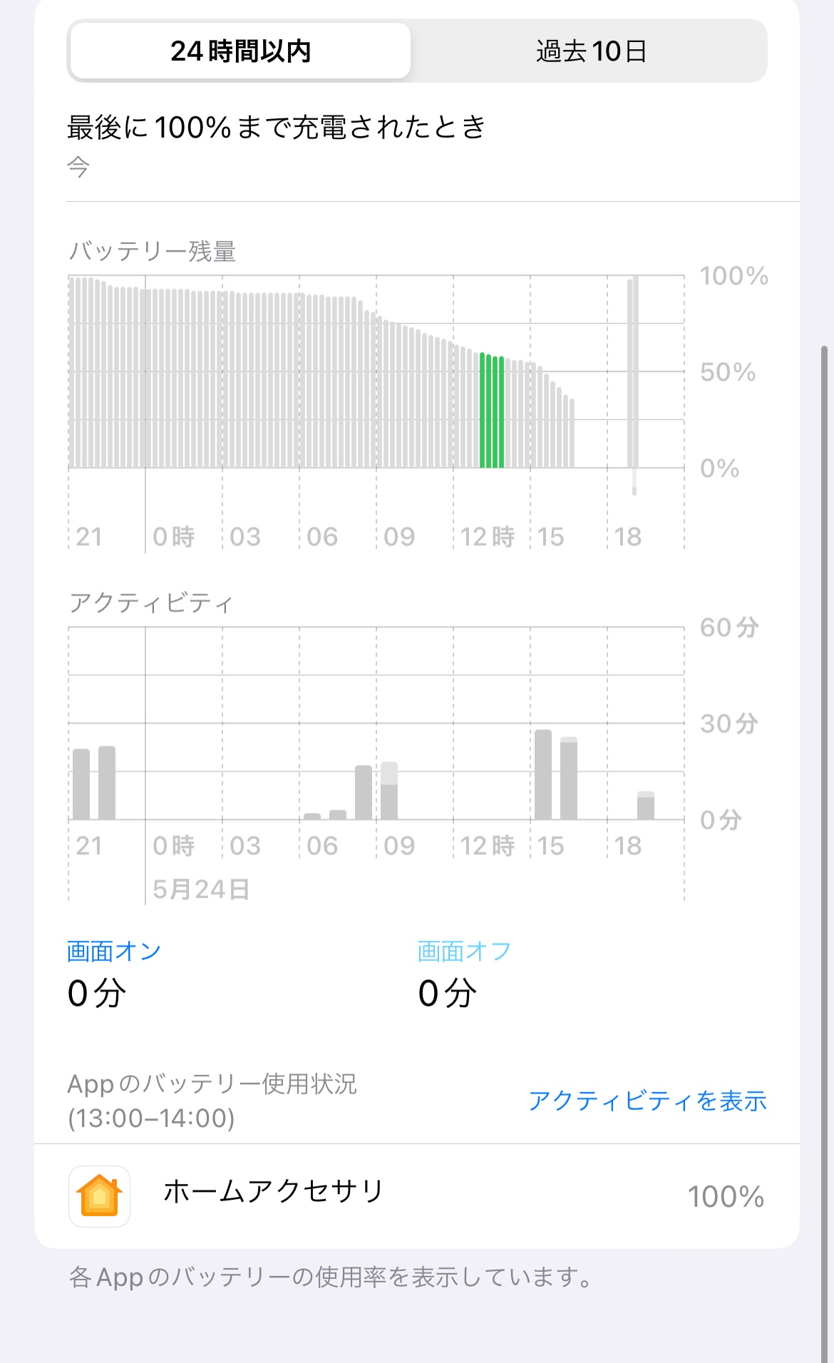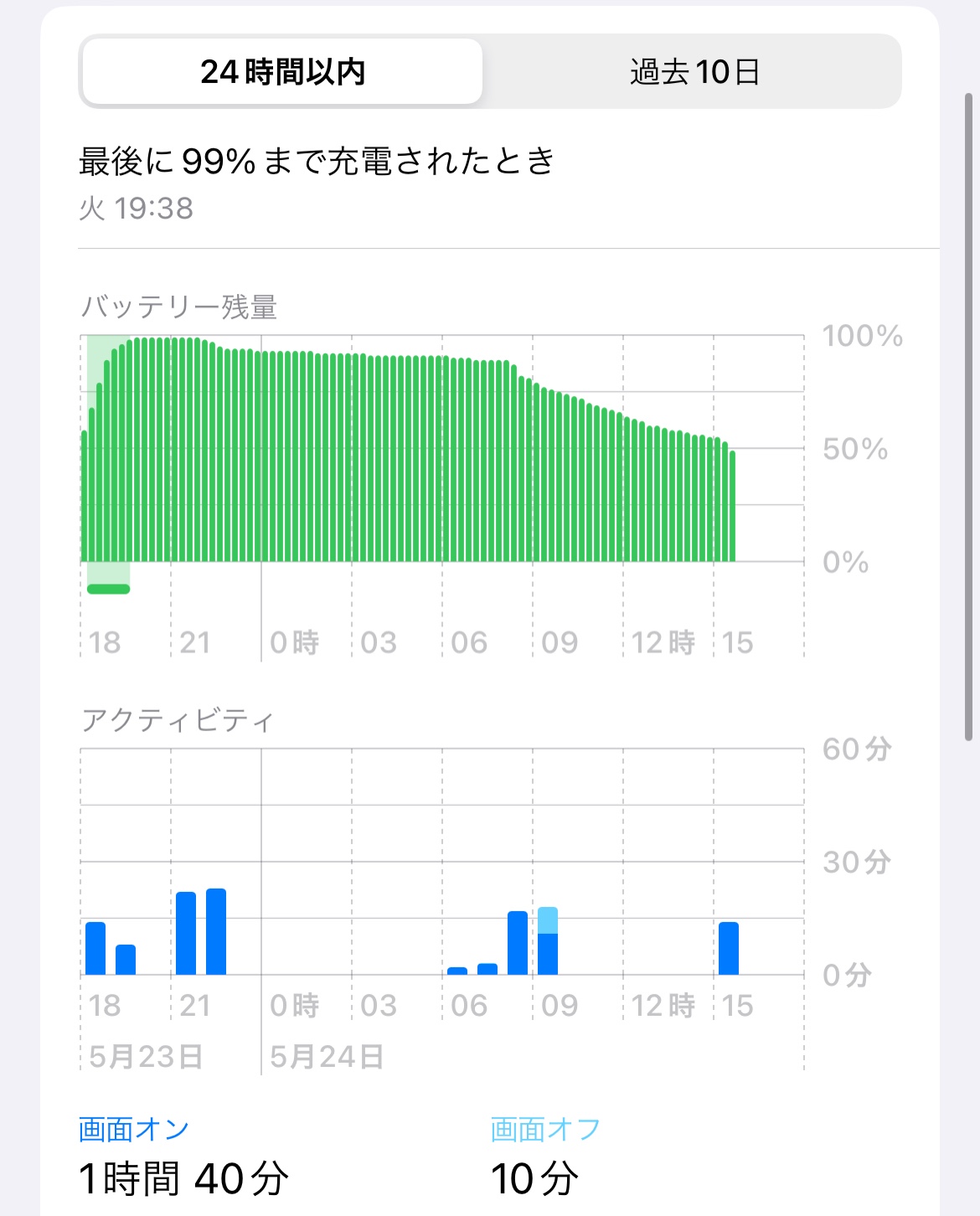5時間ほどiPhoneを触らなかったのですが、30%ほど減っていました。