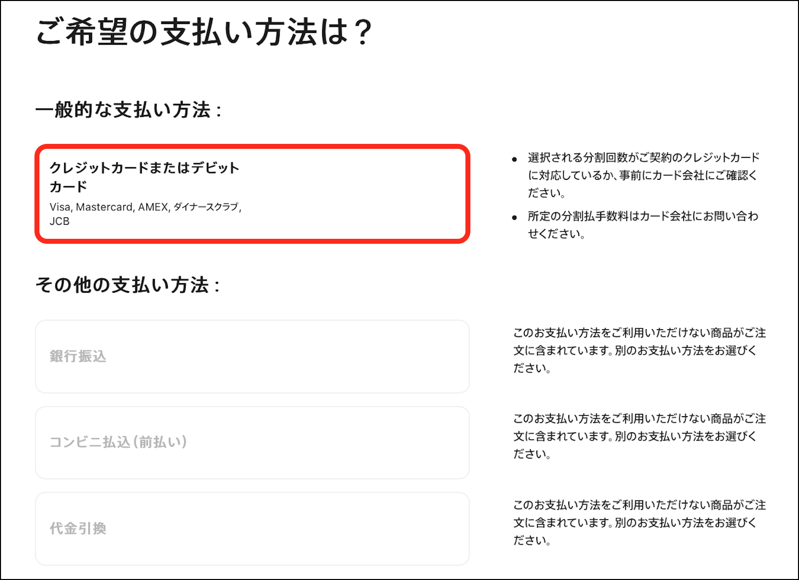 残念ながら、現在、E メールで贈る Apple Gift Card の購入に利用出来るのは、下の画像の様にクレジットカードまたはデビッドカードのみ となっていますので、キャリア決済では E メールで贈る Apple Gift Card を購入する事は出来ません。