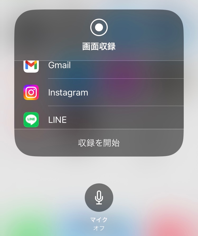 画面収録のコントロールセンターのボタンを押し、選択に出てくるアプリの変更は出来ないか