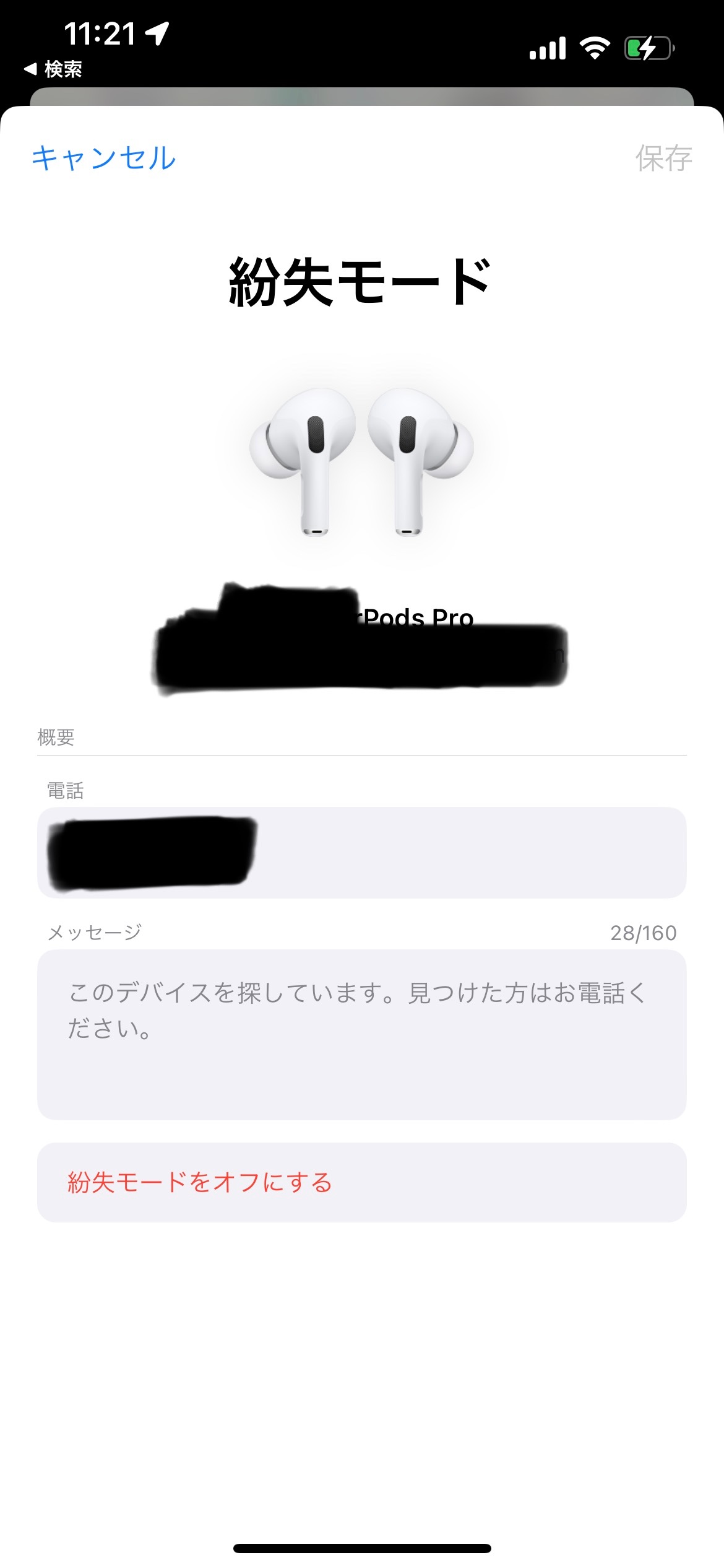 昨日、大学内でAirPodsProを紛失してしまいました。紛失してから1時間後に電話番号とデフォルトのメッセージで紛失モードにしました。昨日の夕方までは最後の位置情報として学内が表示されていたのですが、夜になって別の位置情報が通知されました。