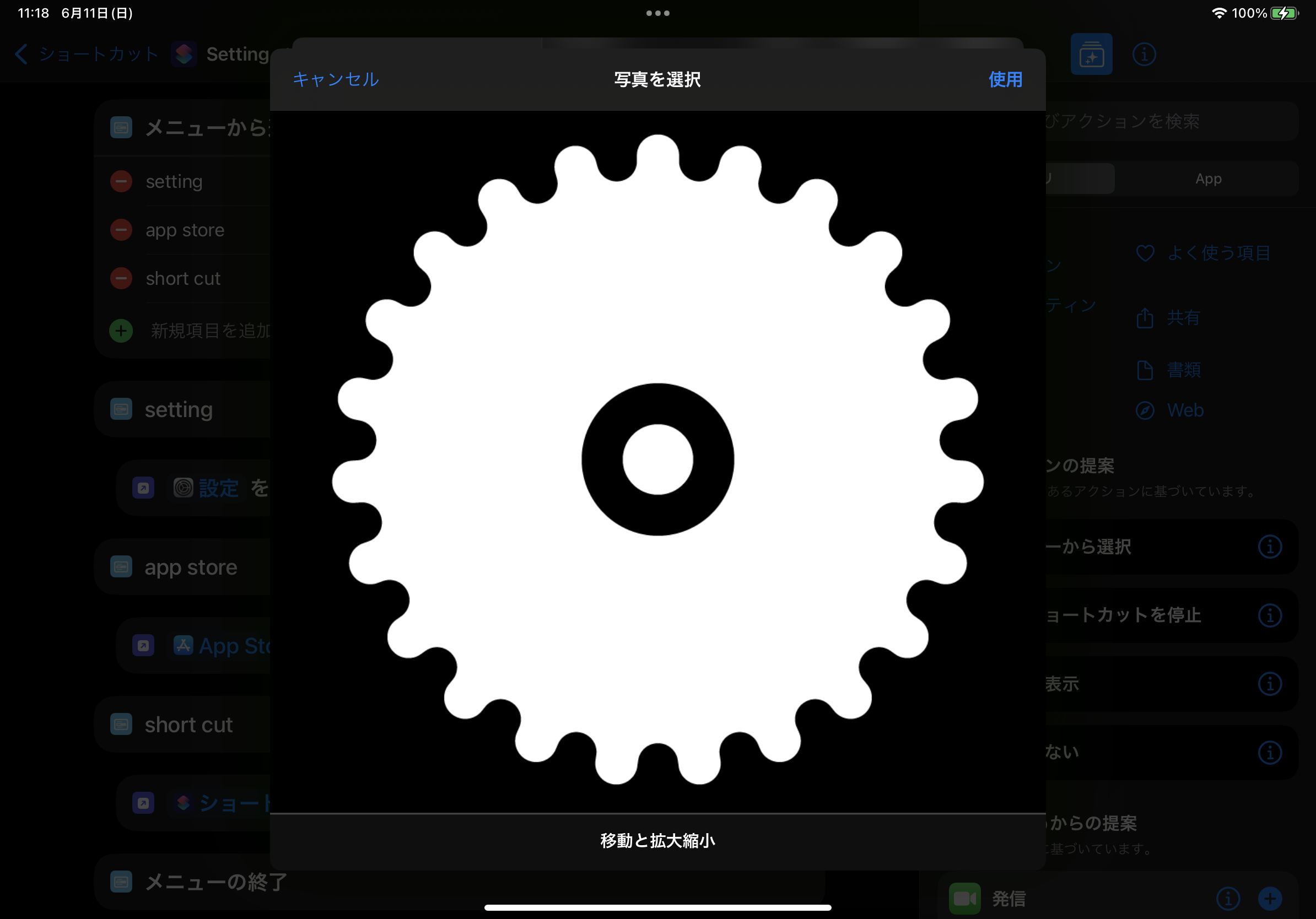 アイコン画像として設定する画面にて、画像を拡大使用してみたり、縮小使用してみたり、iPadを再起動したり、