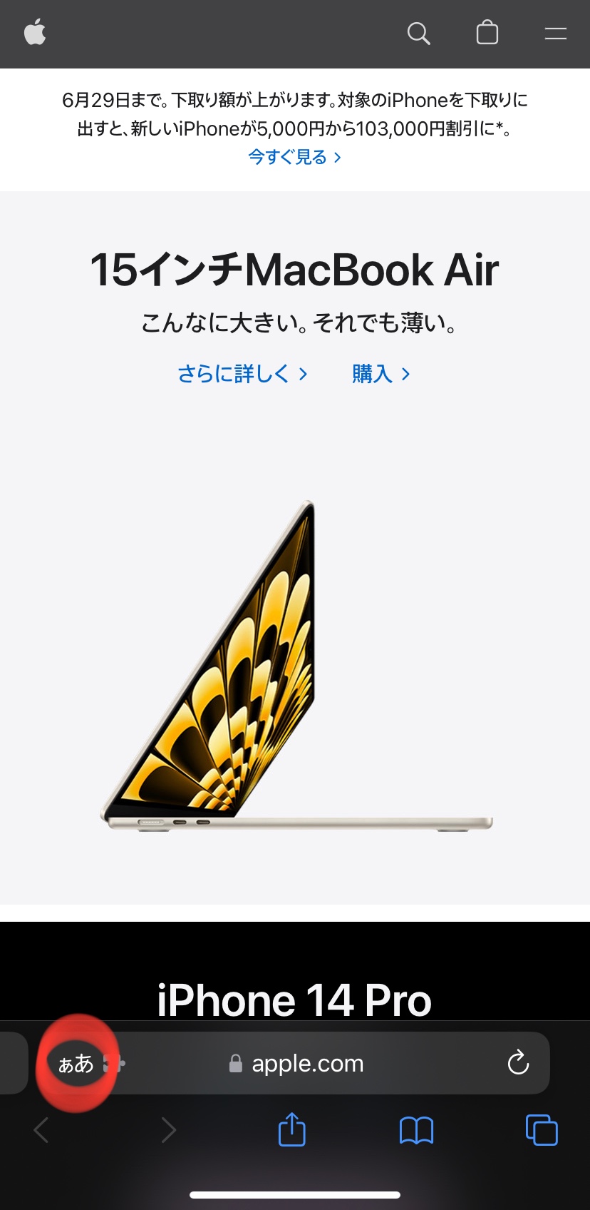 ①位置情報を有効にしたいサイトで、ああ(下の図)の部分を押してください。
