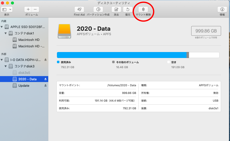 OSアップデートのダウンロード先に外付けHDDを選択してしまい、