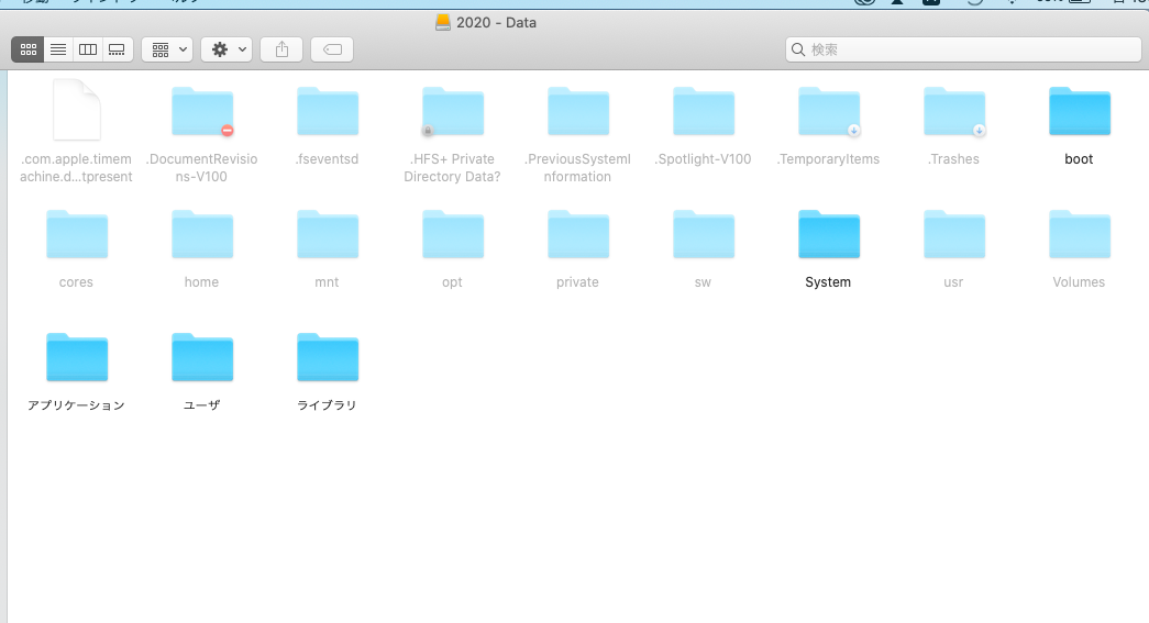 ディスクユーティリティーで容量を見ると取り出したい状態の時の名前と情報は見つけられました。