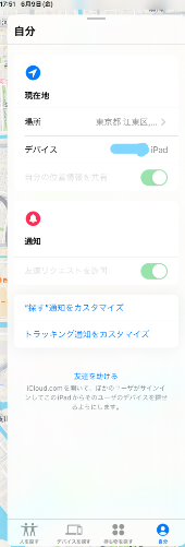 iPadの「探す」アプリの現在地のデバイスの名前が