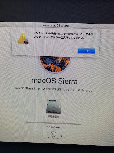 ディスクユーティリティは全て削除し、時刻も合わせましたがエラーのままです。