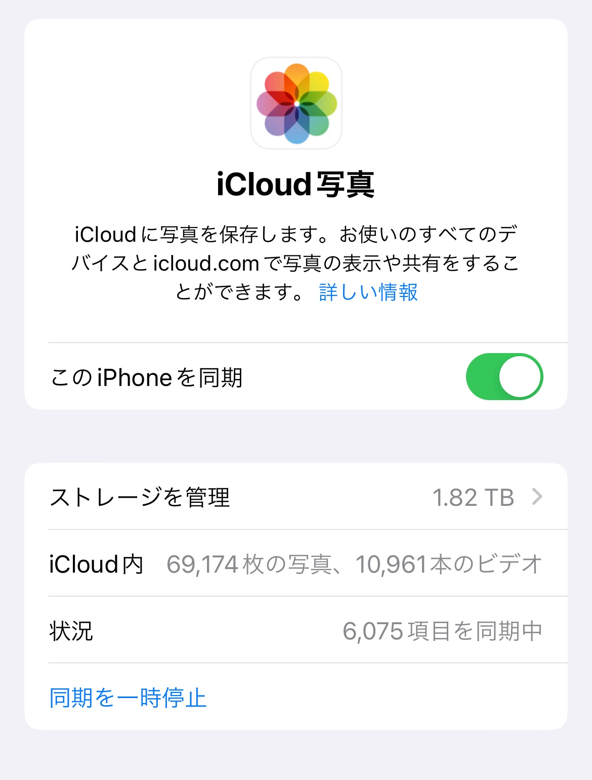 ユーザのユーザプロフィール: やすどん やすどん ユーザレベル: レベル 9 61,286 ポイント 2023/07/06 06:20 ami731 への返信 写真が多そうなので、しばらく放置するしかないかな。iPhoneの内蔵ストレージに余裕はありますか? 返信 リンク