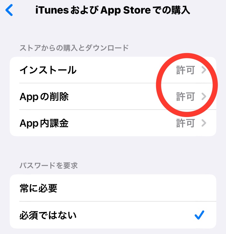 もし、それが面倒なのであれば「Appの削除」のみを「許可しない」にしても良いと思います。