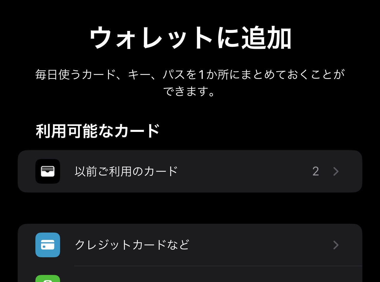少し待つと利用可能なカードの以前ご利用のカードという項目が出るためそちらをタップします。