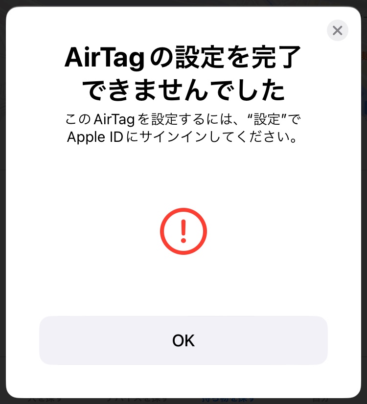 再起動やBluetoothの入れ直し、2ファクタ認証もしました。Apple IDはサインインしてる状態です。AirTagも一度リセットかけ、友人のiPhoneで設定できるか確認したところ問題なく設定できました。