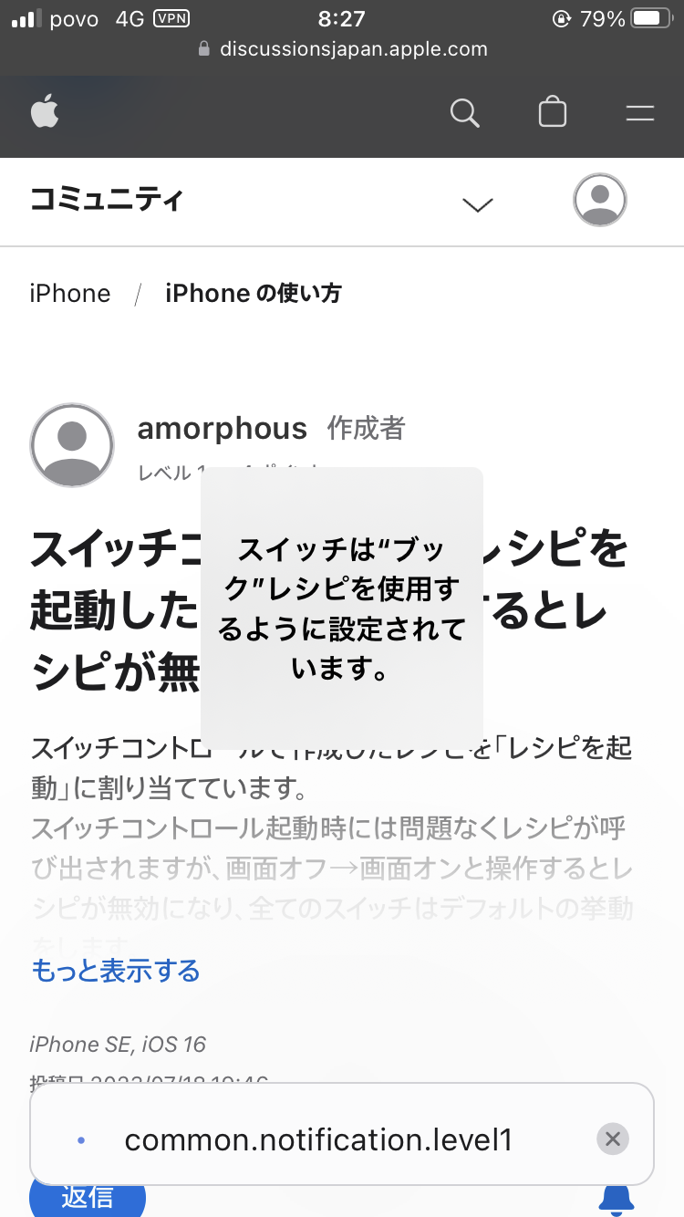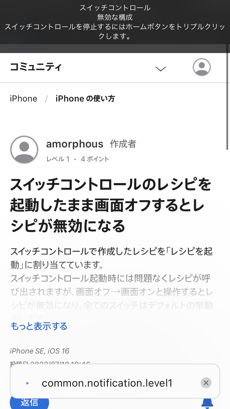 スイッチコントロール起動時には問題なくレシピが呼び出されますが、画面オフ→画面オンと操作するとレシピが無効になり、全てのスイッチはデフォルトの挙動をします。
