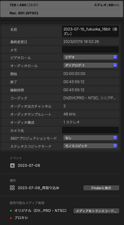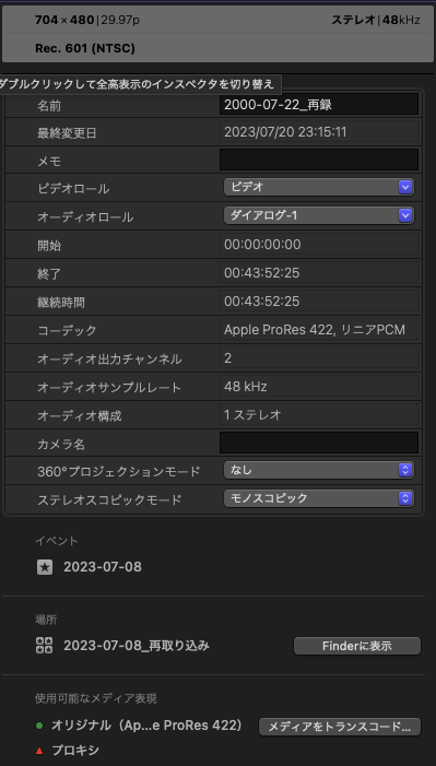 FCPで取り込んだ映像フォーマットは?(たぶんmp4/prores?)