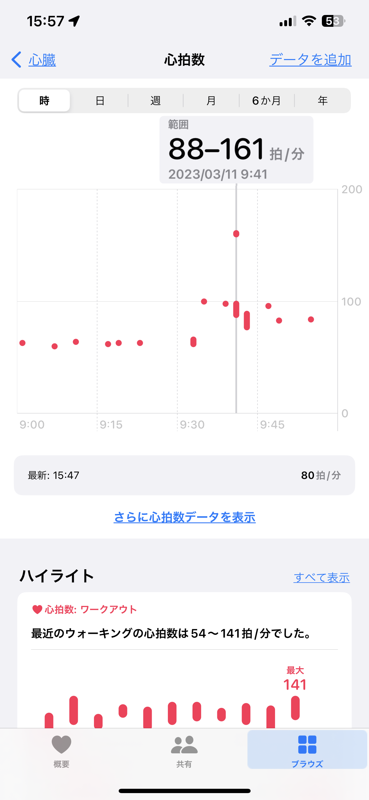 アップルウォッチ、運動時など、とても役に立っています。ただ、特に自覚症状もないのに突然、心拍数が高くなっていることがあります。点で表示されています。こういった質問をすると、それがどうした病院に行けとか、使い方を読め、という答えが戻ってきて嫌な思いをします。