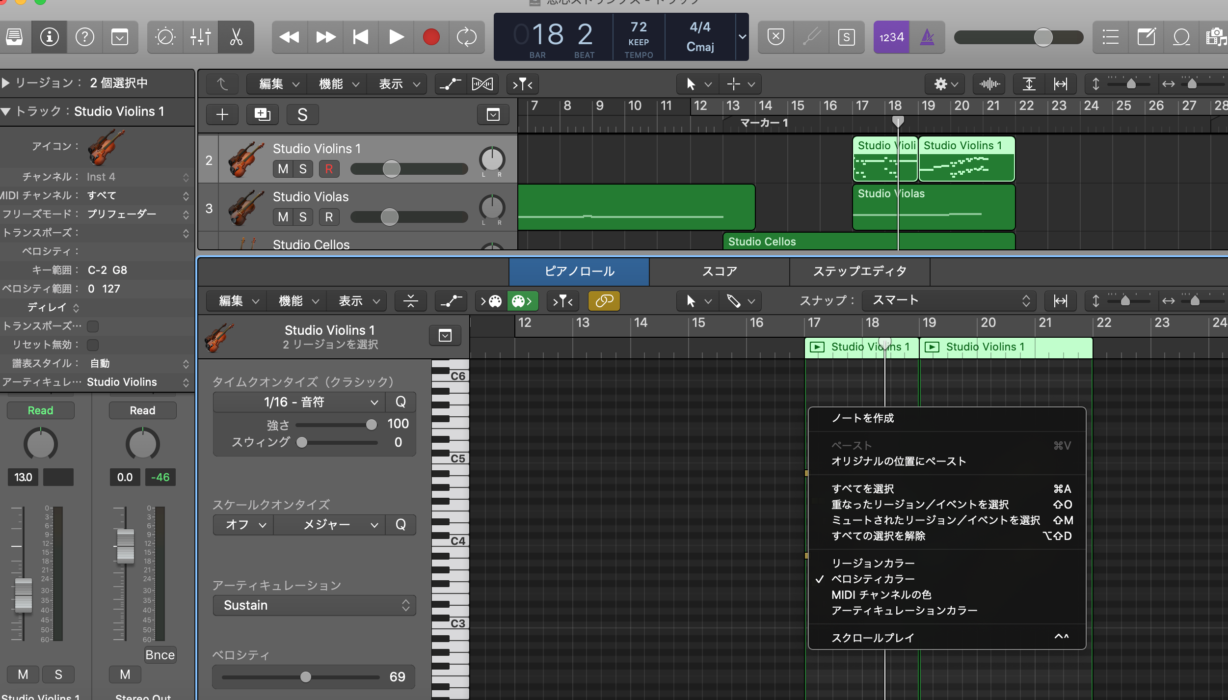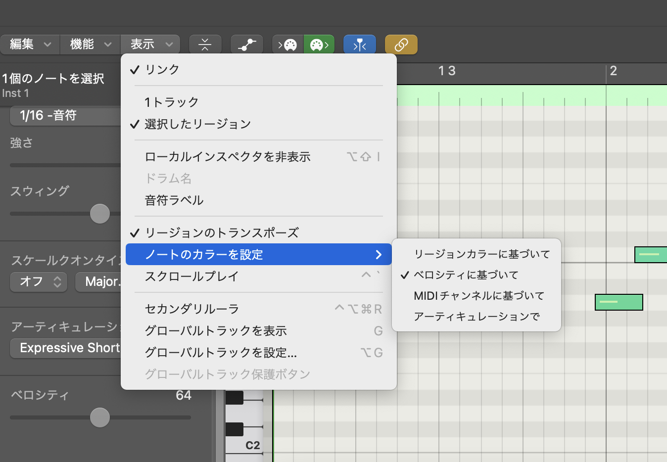 ピアノロールの打ち込み画面にてベロシティカラーで表示されていたのですが、誤操作で、これがアーティキュレーションカラーに変更されてしまいました